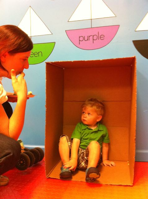 I don't know what it is about boxes, but babies love them. This was a random big box at Sofia's birthday party. You'd think that music, other babies, toys, CAKE would be more interesting than sitting in a box, but no. Boxes are magic. Also sort of magic is how well really really pale people - like me and Felix - reflect bright orange flooring.
