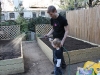 The landlord had a guy come last week to put in these great wood planting beds so that we can grow vegetables and not worry about the roots getting close to the lead-y undersoil.